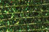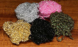 Hareline Solid & Krystal Tinsel Chenille is a medium sized chenille. It combines krystal tinsel and rayon fibers to produce a unique quality of shimmer. Excellent for buggers, stones, steelhead and crappie fly patterns and any fly that needs some extra glimmer. Approx. 1/4" wide.