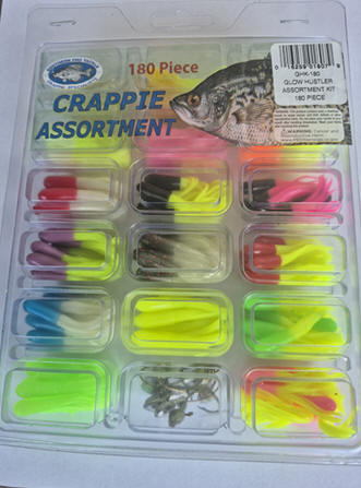 SOUTHERN PRO GHK-180 GLOW HUSTLER ASSORTMENT- This is the Southern Pro 180pc Glow hustler kit. This kit comes with 17 colors with 10 colors each, plus you get 10 minnow heads