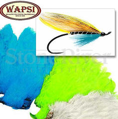 SALMON FLY HEN NECKS - SUB FOR ILLEGAL, EXOTIC PLUMAGE. USE FOR TRADITIONAL SALMON FLY PATTERNS. MANY OTHER USES IN FRESH WATER. With an abundance of thin stemmed and softly webbed feathers that are perfectly proportioned for a wide range of hook sizes, our economically priced Dyed Salmon Fly Hen Necks are a favorite among thrifty Atlantic salmon and steelhead fly tiers for creating tails, throats, collars, and beards on their favorite hairwing wets and streamer patterns. Great for dressing bass and panfish bugs too, these humbly priced yet surprisingly nice quality Dyed Salmon Fly Hen Capes are available in a wide range of popular colors certain to please.